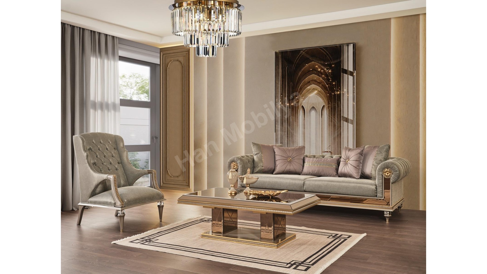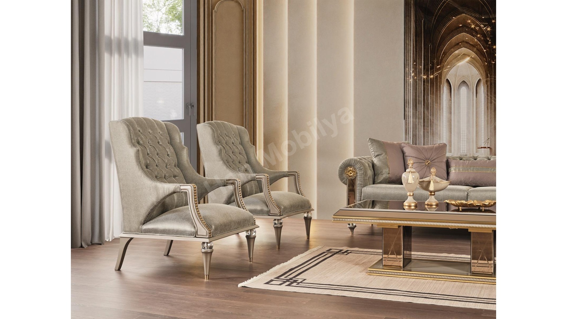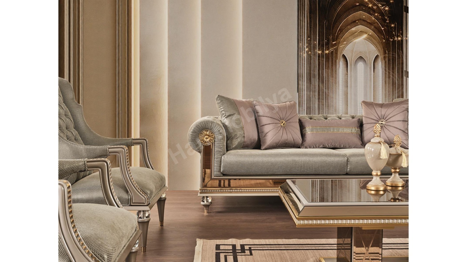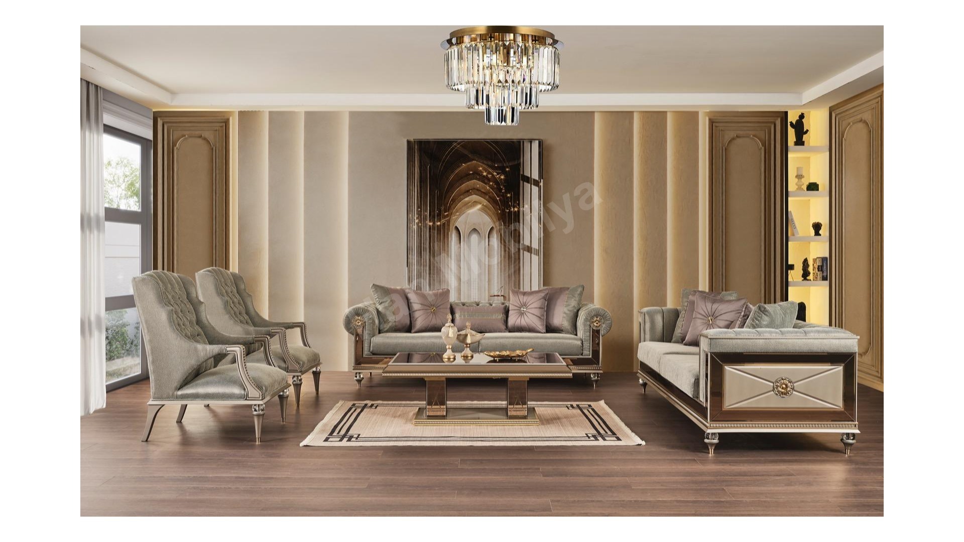 1xAşiyan Üçlü Koltuk Artdeco 1xAşiyan Üçlü Koltuk Chester 1xAşiyan Berjer