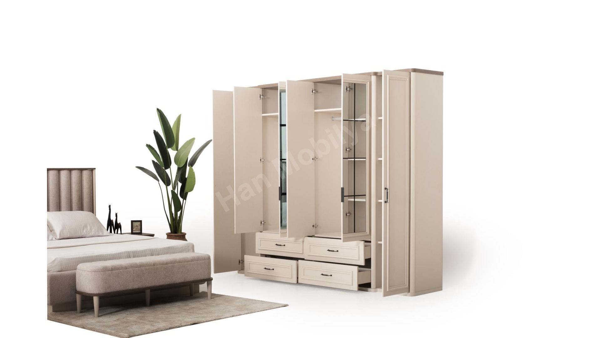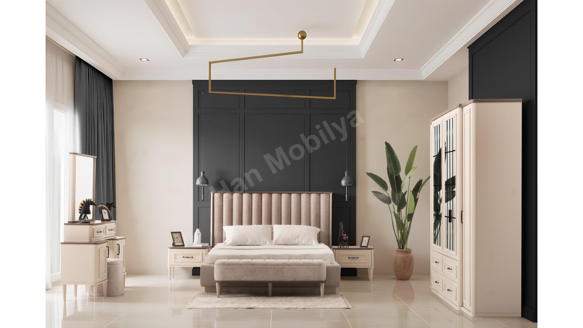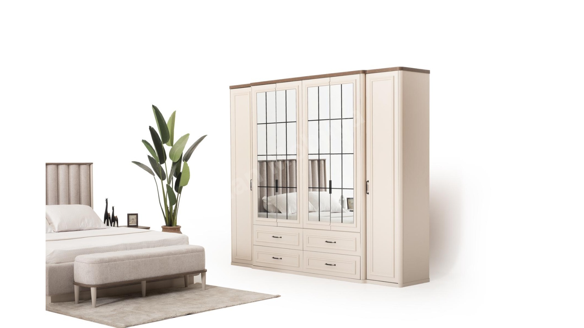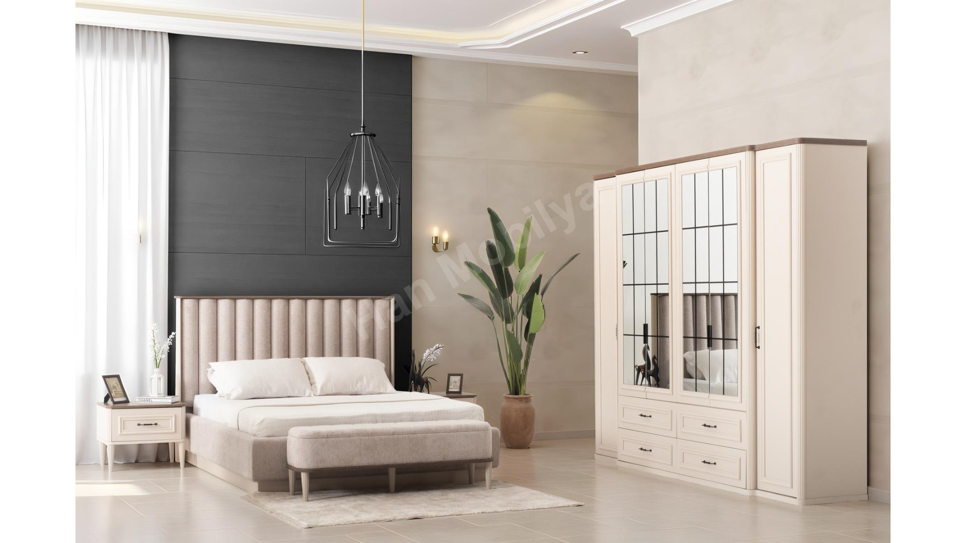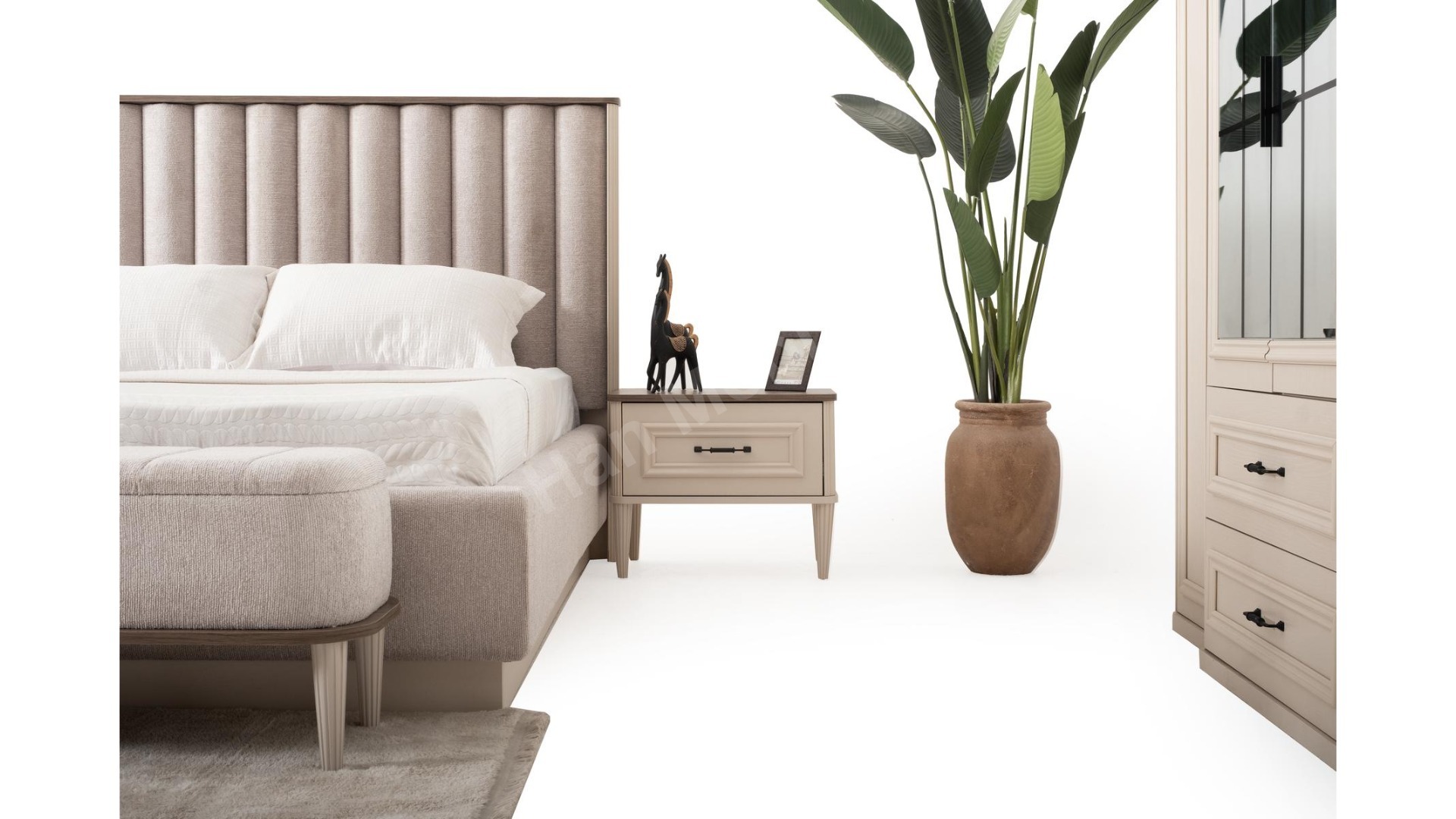 2xBeta Komodin 1xBeta Bazalı Karyola 1xBeta Dolap 1xBeta Şifonyer 1xBeta Bench 1xBeta Puf