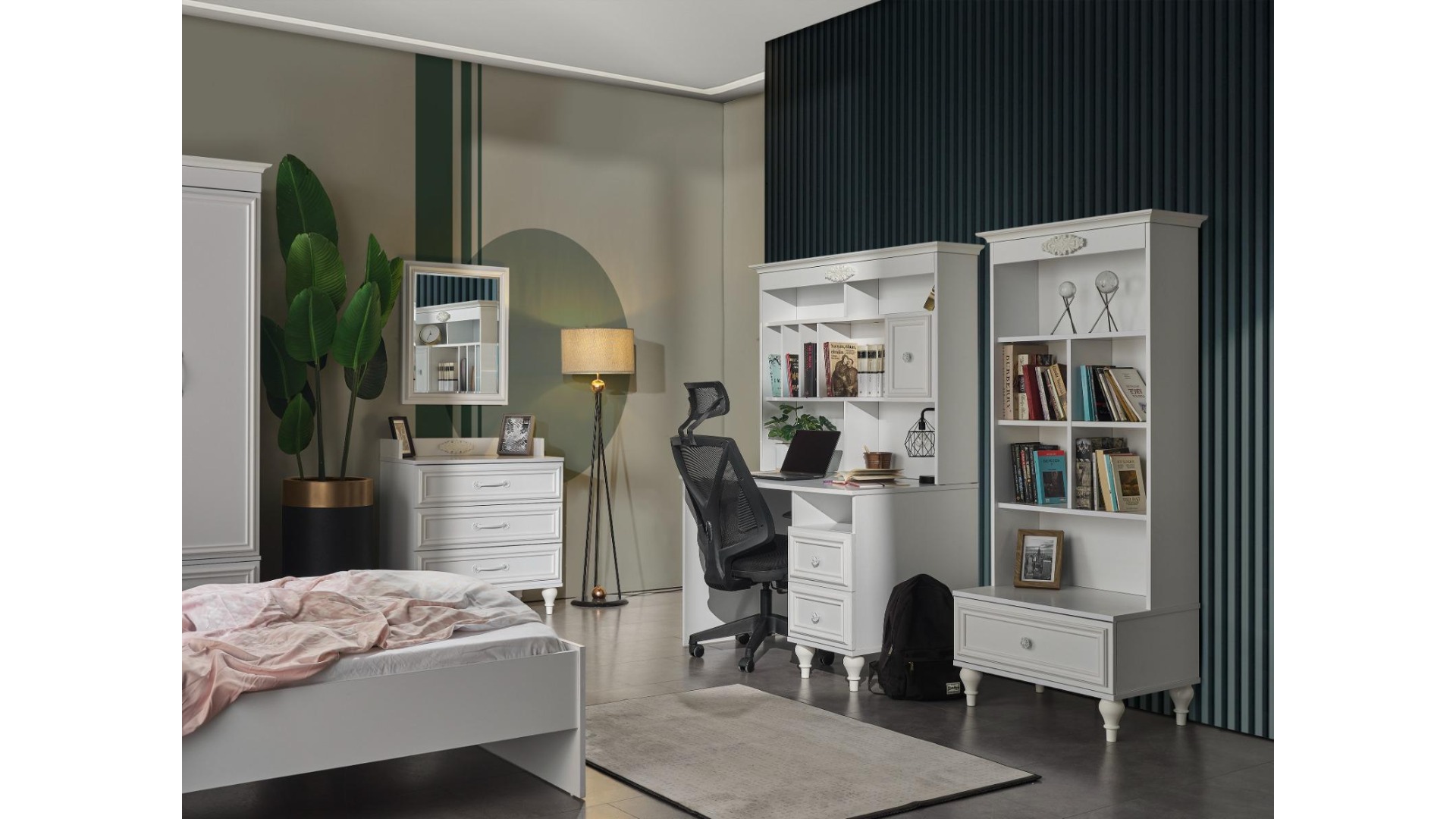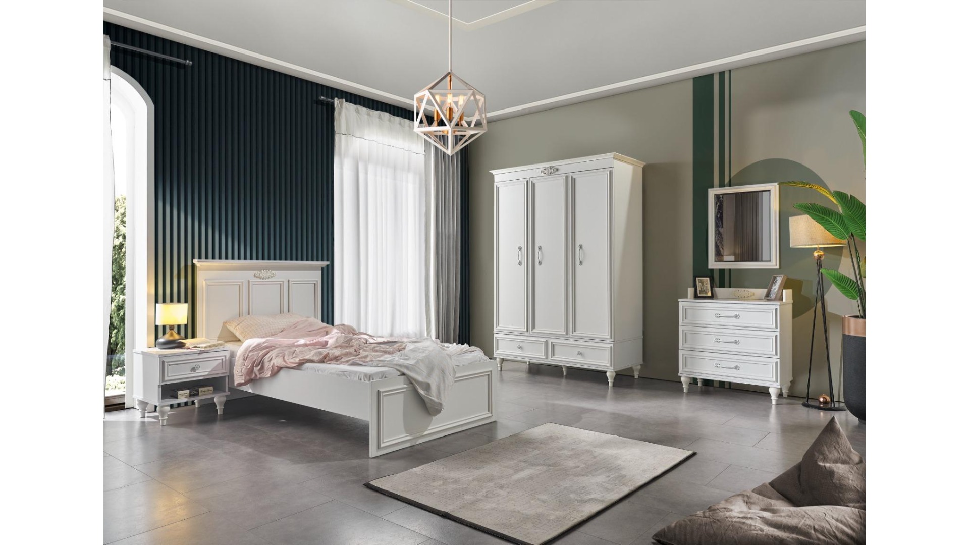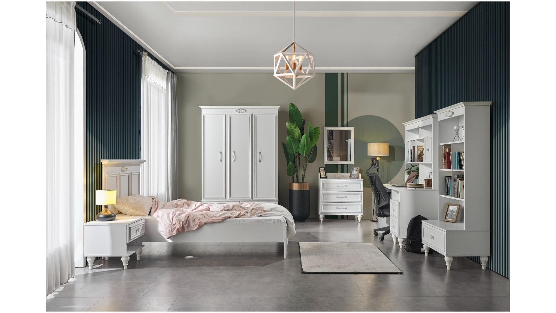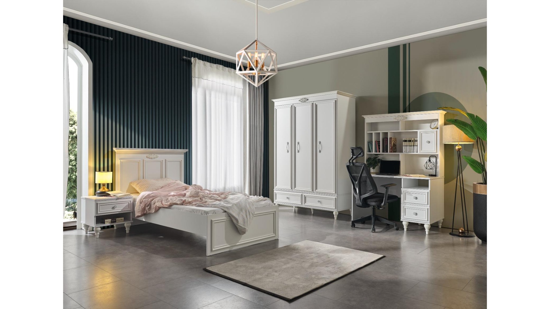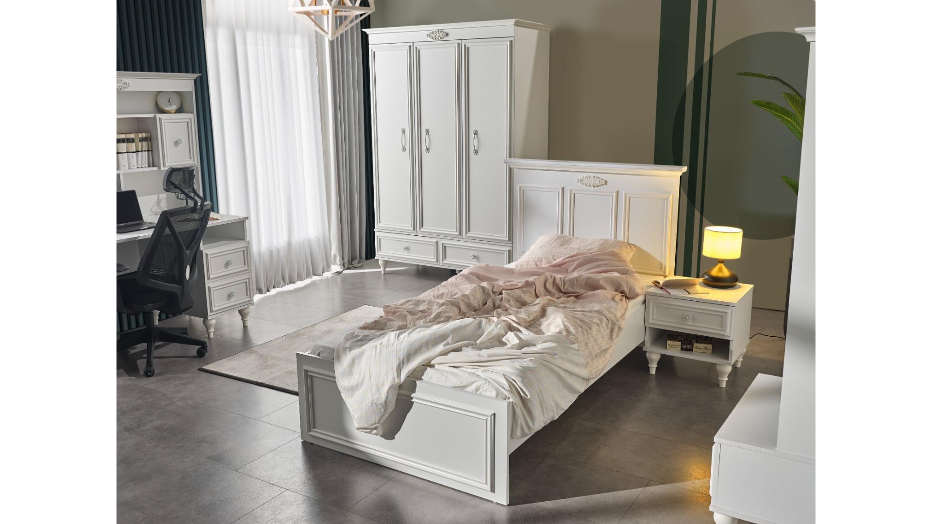 1xİskenderiye 3 Kapılı Gardırop 1xİskenderiye Çalışma Masası Alt Modül 1xİskenderiye Başlıklı Karyola