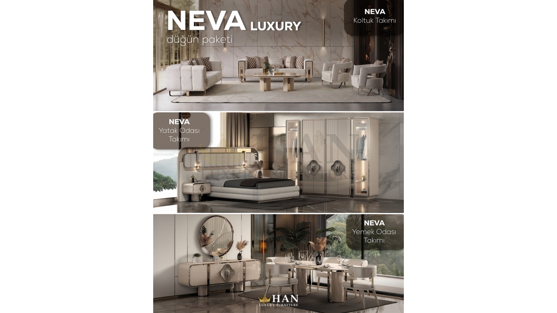1xNeva Koltuk Takımı 1xNeva Yatak Odası 1xNeva Yemek Odası