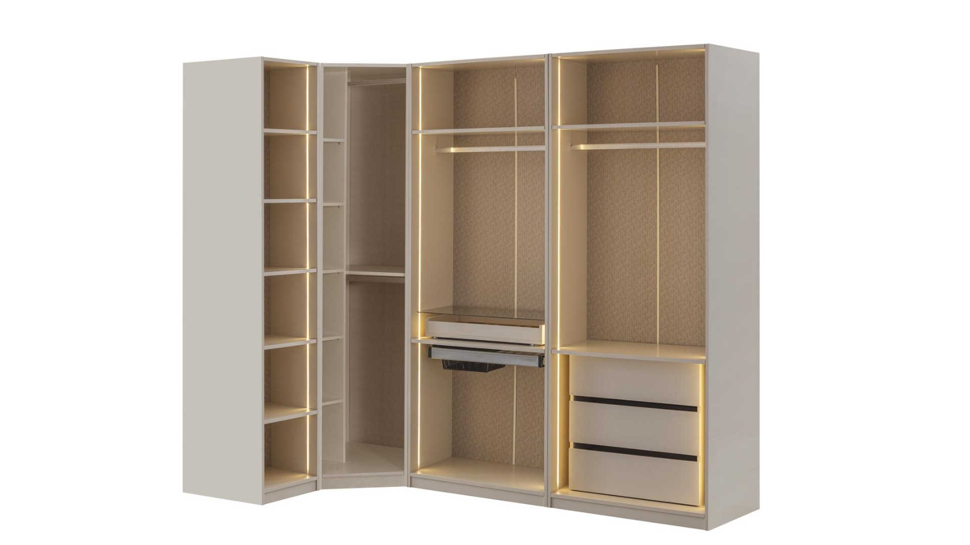 2xPablo Komodin 1xPablo İki Kapaklı Çekmeceli 1xPablo İki Kapaklı Pantolonluklu 1xPabloTek Kapaklı Raflı Modül 1xPabloTek Kapaklı Askılıklı Modül 1xPablo Karyola Bazalı 1xPablo Şifonyer 1xPablo Şifonyer Aynası