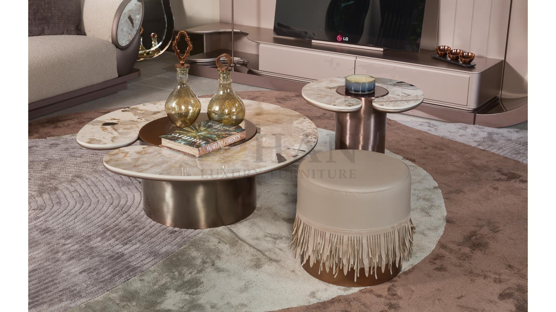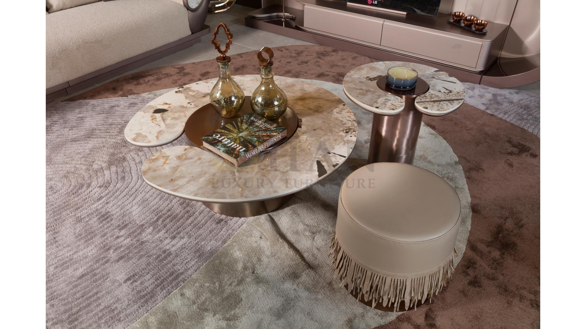 Tesla Walnut Gold Sehpa