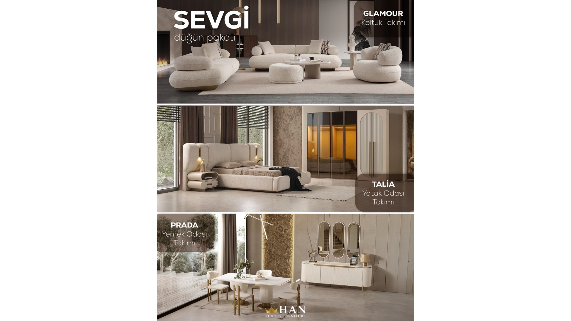 1xGlamour Koltuk Takımı 1xPrada Yemek Odası