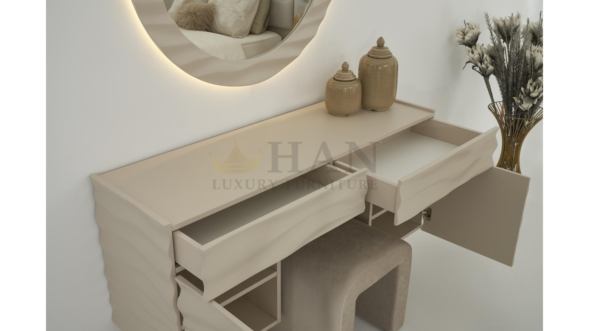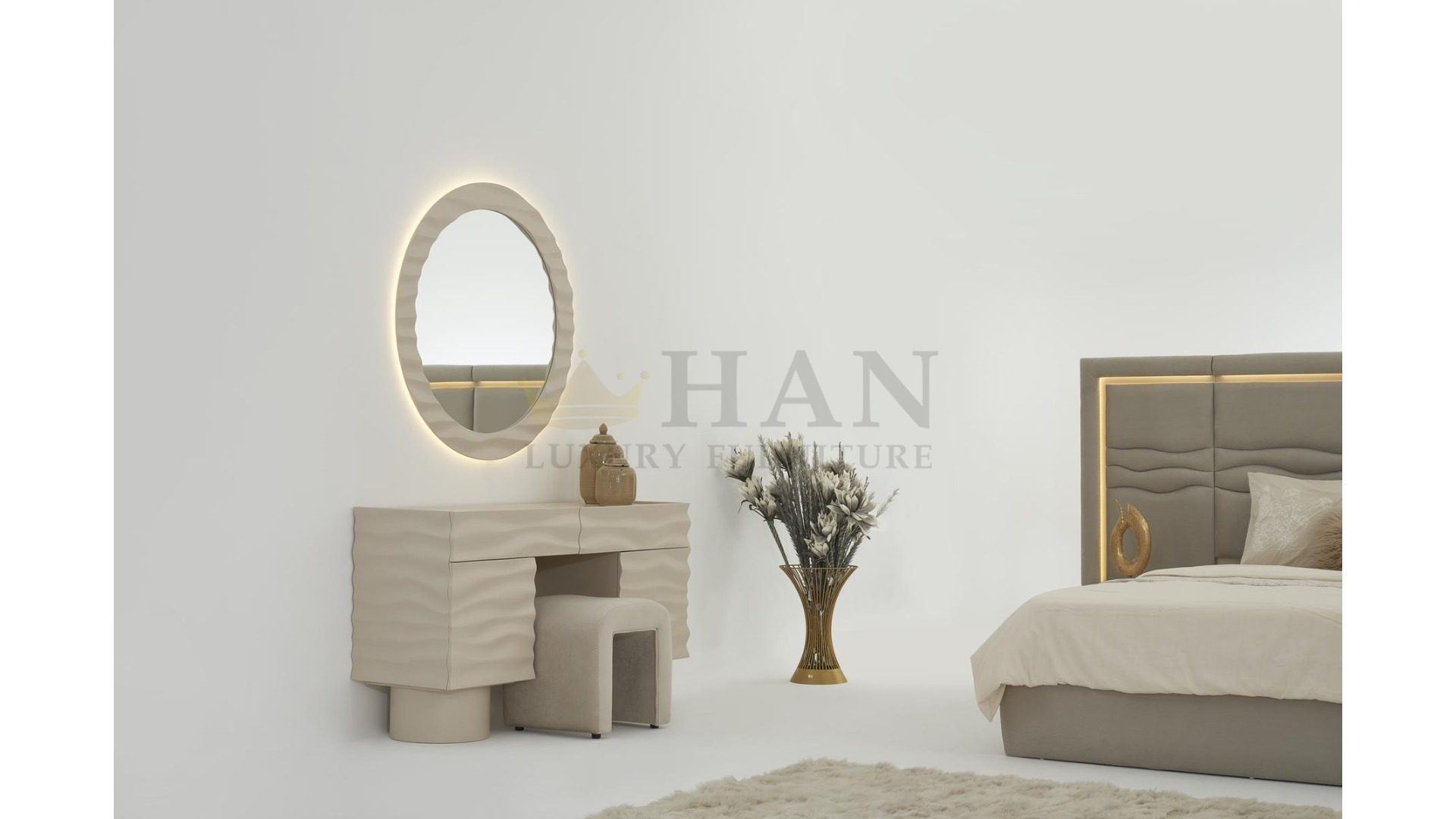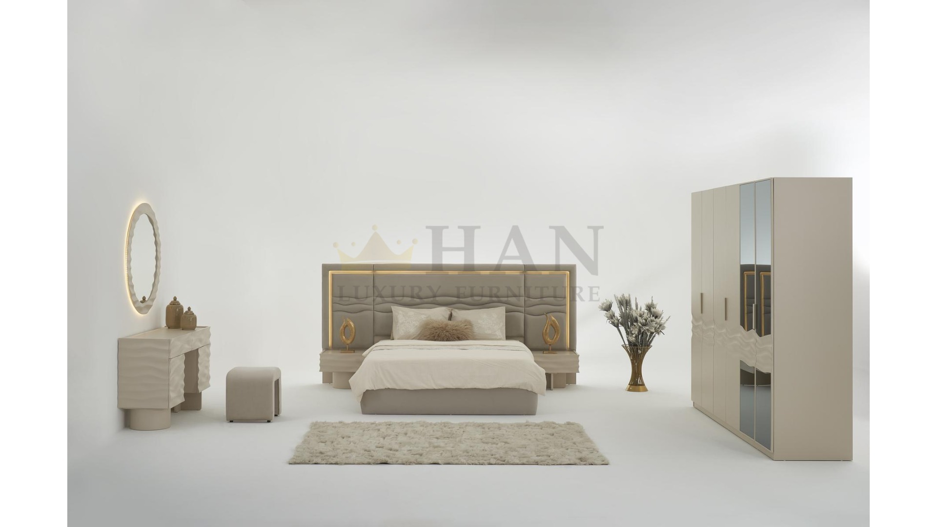 Kategoriler: Boy Aynası, Dresuar, Puf, Yatak, Yatak Odası